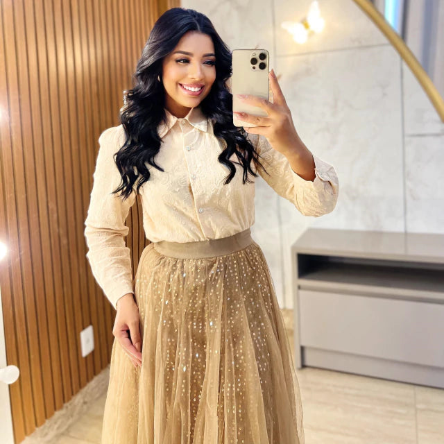 Com um toque leve e feminino, a Camisa Encanto é daquelas peças que falam por você. Seu caimento impecável e detalhes delicados trazem uma elegância sutil que transforma qualquer look, do casual ao sofisticado. Ideal para quem ama se sentir linda sem abrir mão do conforto, ela combina com jeans, saias ou alfaiataria – sempre com muito estilo.