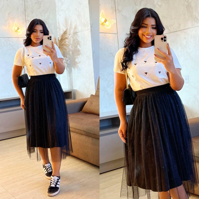 Descubra o charme irresistível do nosso Conjunto Saia + Blusa!Ideal para mulheres que desejam unir conforto e estilo em um só look, este conjunto é a escolha perfeita para diversas ocasiões.
