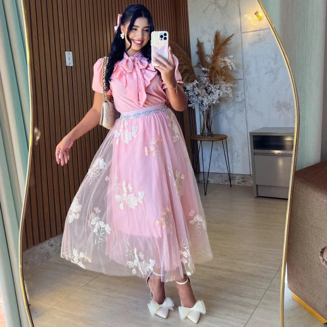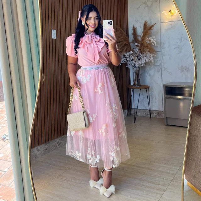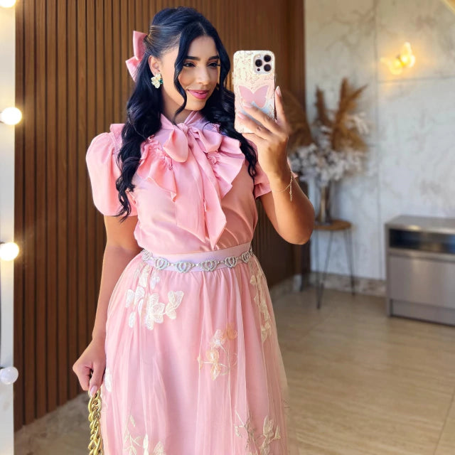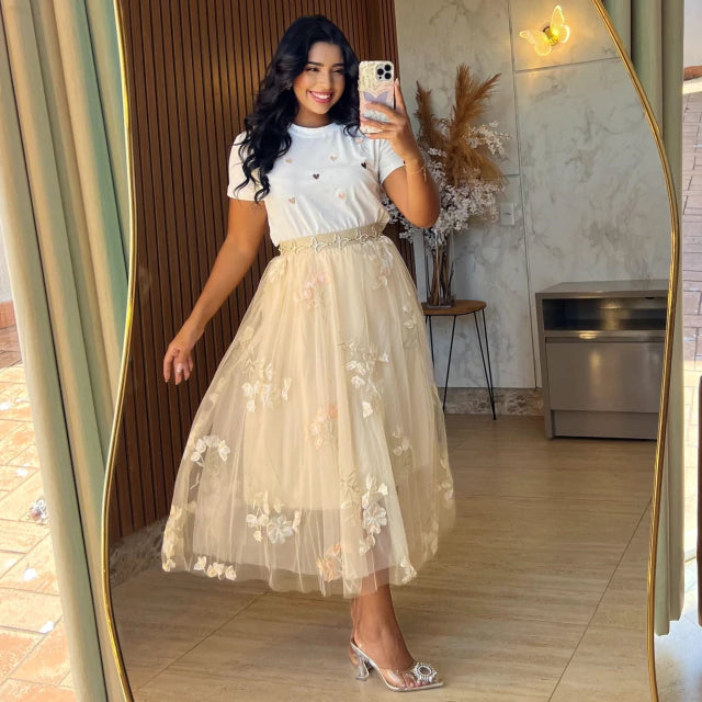 Saia Tule Sofia 3D – Um toque de magia no seu look!✨