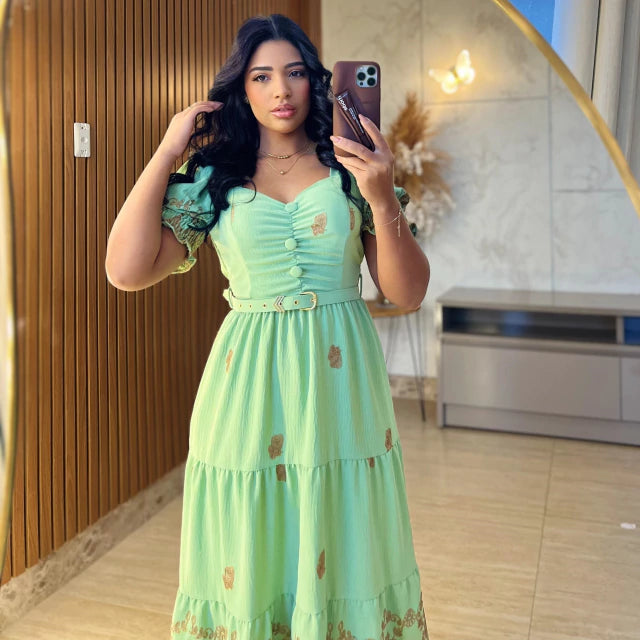 Com seu bordado delicado e um cinto que define a cintura, o vestido cria uma silhueta elegante e feminina. Seja para um evento especial ou um encontro casual, o Vestido Katarina se adapta com graça, tornando seu visual inesquecível.