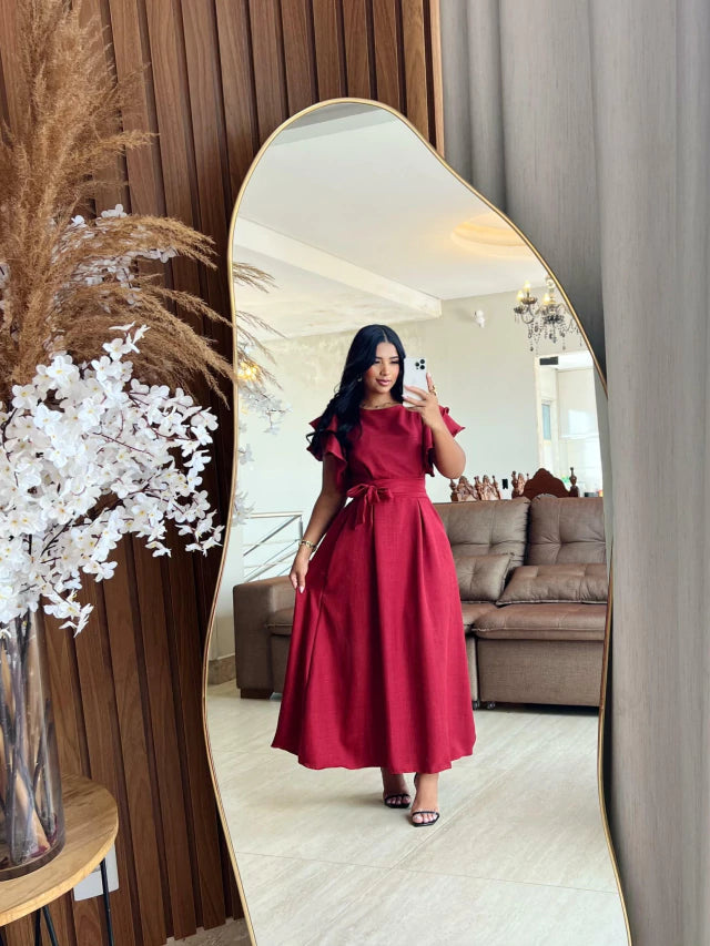 Um vestido feito com uma riqueza de detalhes e elegância para mulheres exigentes com tecido leve e muito delicado